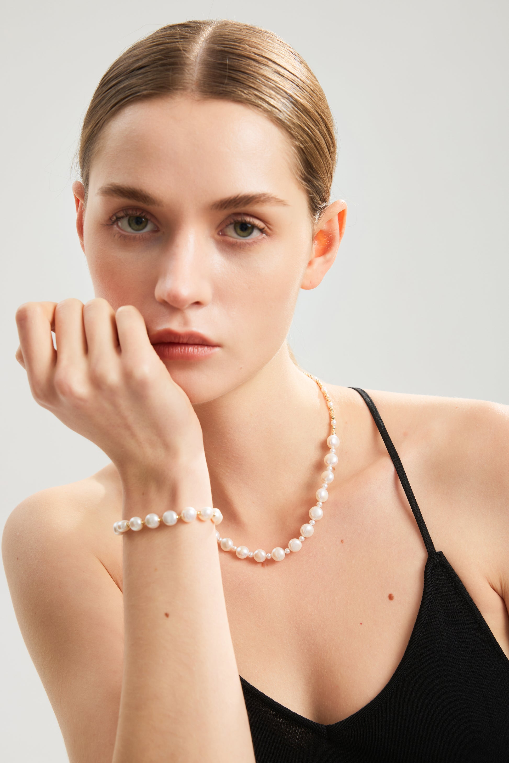 MOONLIT Series Freshwater Baroque Pearl Bracelet ref.#048 - Button Pearl, 14K Gold-plated