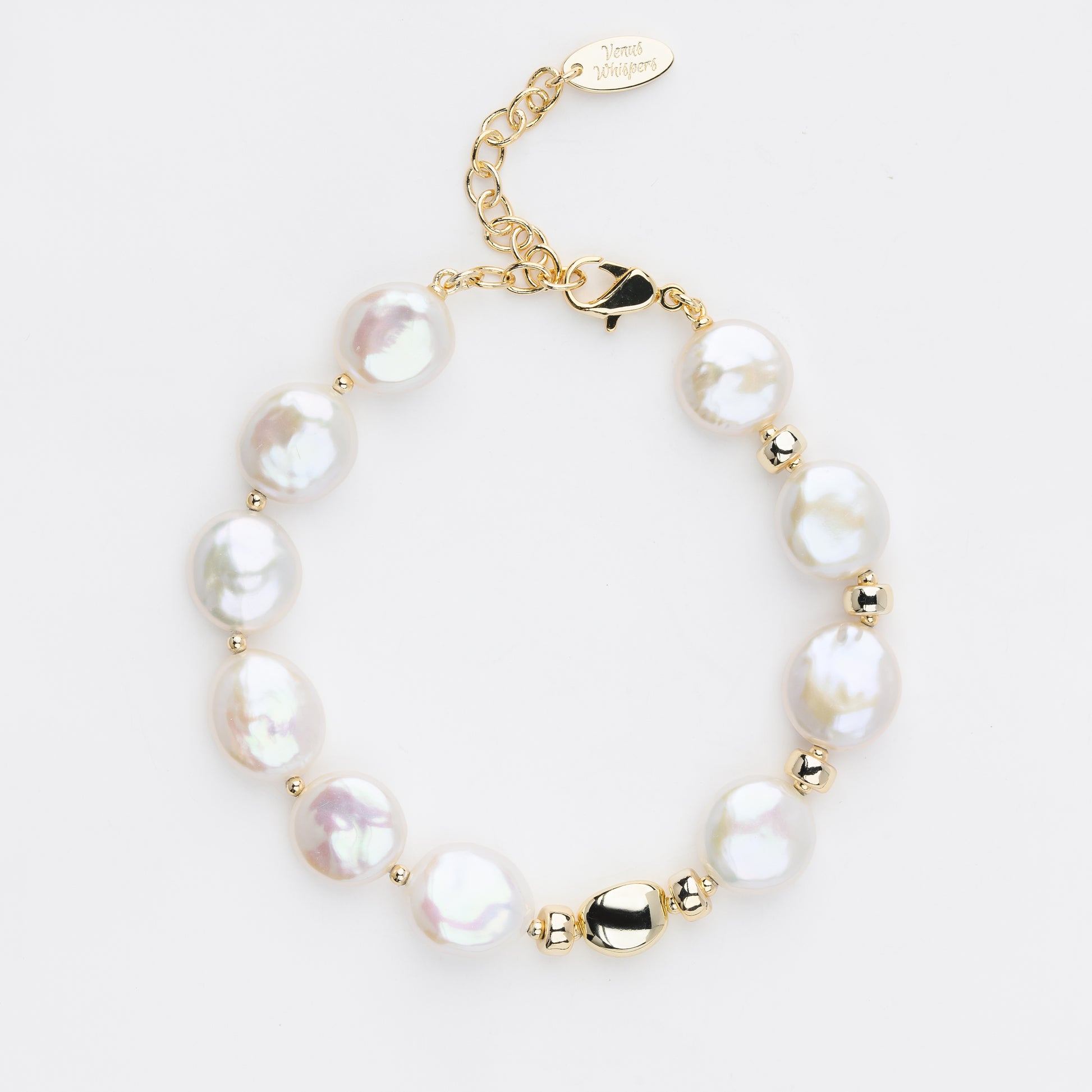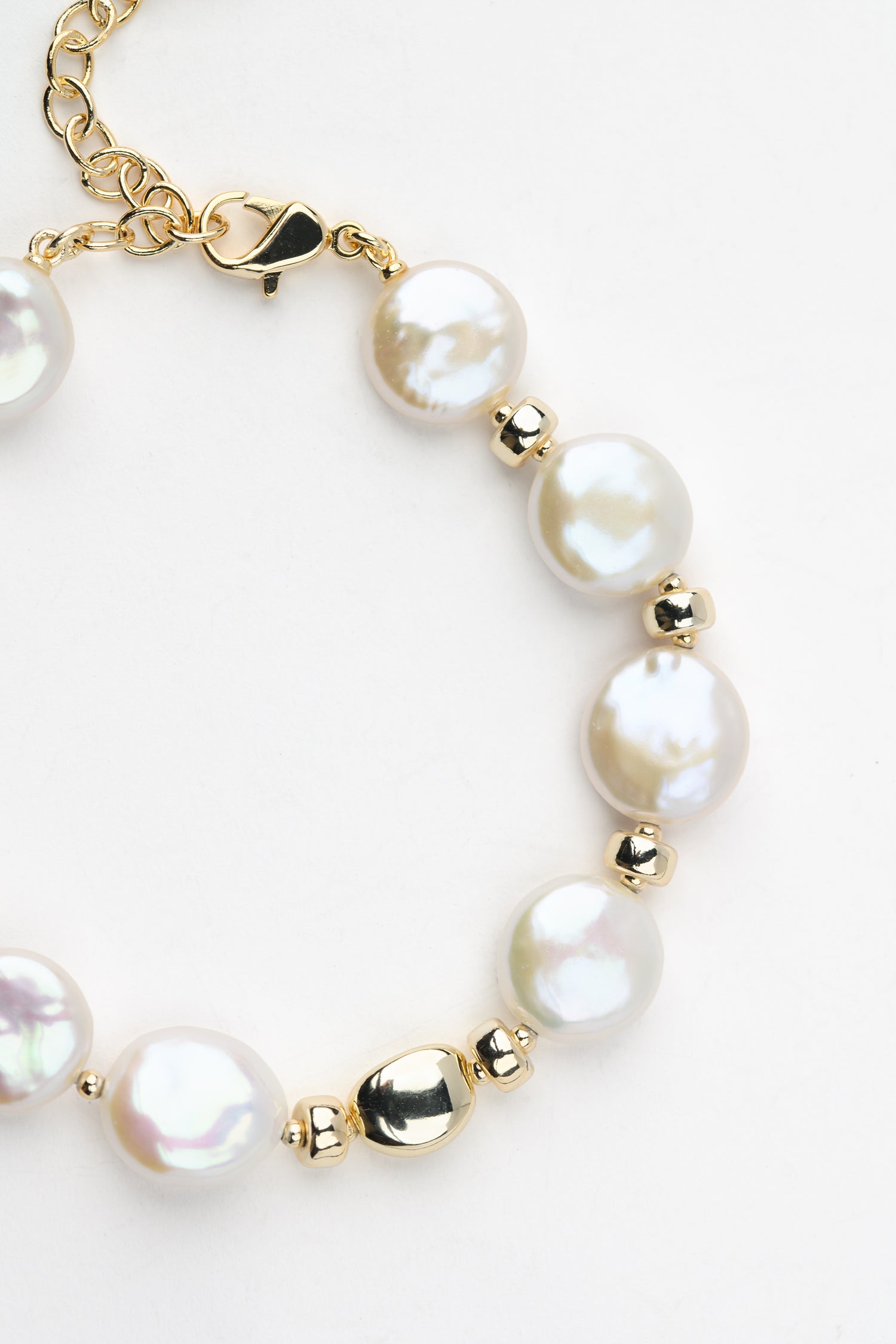 MOONLIT Series Freshwater Baroque Pearl Bracelet ref.#051 - Button Pearl, 14K Gold-plated